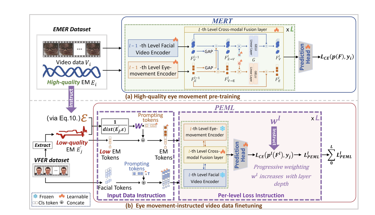 Yuanyuan Liu, Lin Wei, Kejun Liu, Zijing Chen, Zhe Chen*, Chang Tang, Jingying Chen, Shiguang Shan*. "Leveraging Eye Movement for Instructing Robust Video-based Facial Expression Recognition." IEEE Transactions on Affective Computing (2025). [PDF] [DOI: 10.1109/TAFFC.2025.3599859] [Code (GitHub)] |