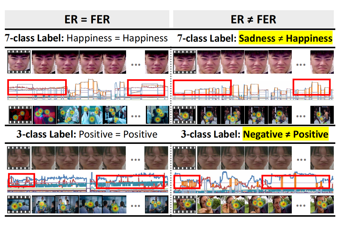 an eye-behavior-assisted multimodal affective database dedicated to bridging the "emotion gap" between facial expression recognition (FER) and genuine emotion recognition (ER). • Contains 1,303 multimodal samples of 121 participants, annotated via a dual-perspective system, featuring: • Three core modalities: facial videos, eye movement sequences, eye fixation heatmaps • Discrete (7-class/3-class) & continuous (valence-arousal) emotion labels (ER/FER dual-perspective) • FER intensity ratings (0-3) via Active Learning-based Annotation (ALA) Dataset Details: https://qyqyqyi.github.io/EMER/ |