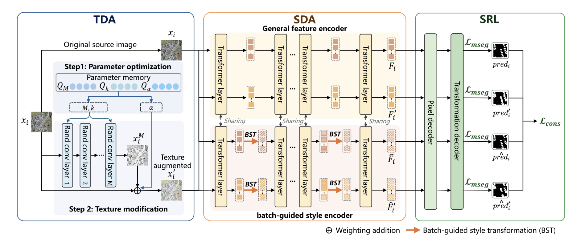 Yunjiao Liu, Yuanyuan Liu*, Kejun Liu, Yuxuan Huang, Chang Tang, Wujie Zhou, Zhe Chen, Wei Xiang, and Hongyan Zhang. "MASDG: Multiview Augmented Single-Source Domain Generalization Method for Robust Remote Sensing Building Extraction." IEEE Transactions on Geoscience and Remote Sensing ,vol. 63, pp. 1-15, 2025. [PDF] [DOI: 10.1109/TGRS.2025.3640112] |